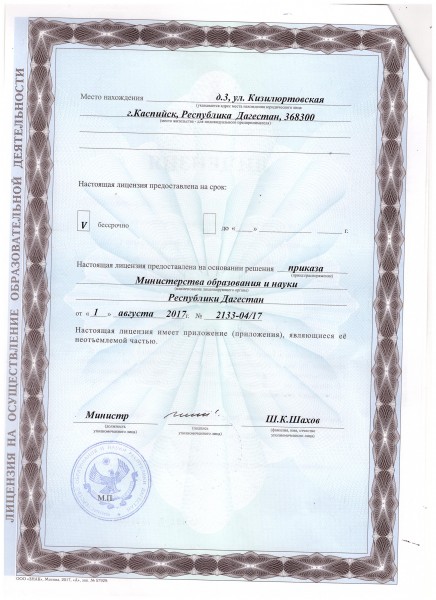 Адрес местонахождения образовательной организации* 368300 РД г. Каспийск ул. Кизилюртовская 3